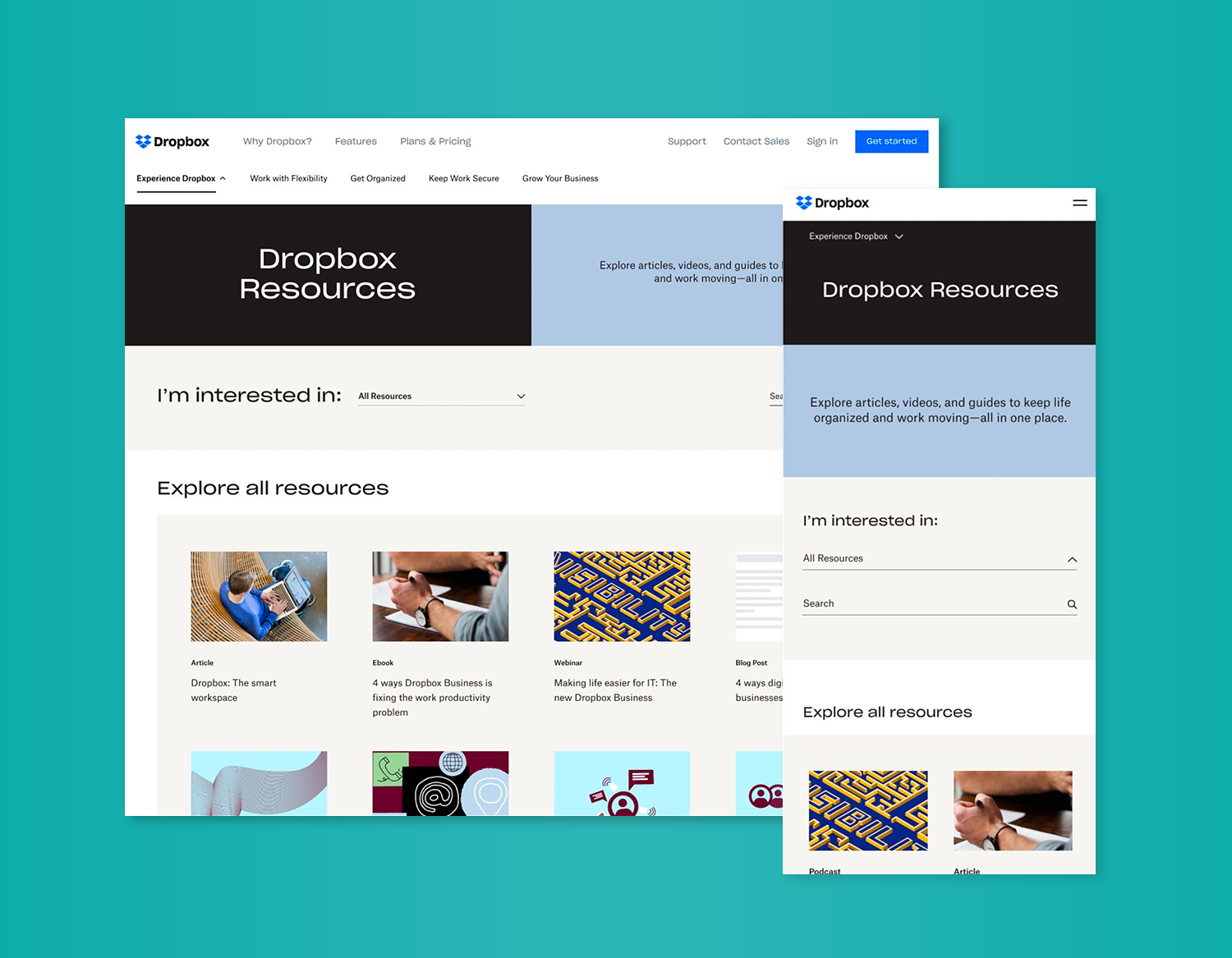 Originally designed by a third-party agency, Dropbox has an extension of their main website known as Experience Dropbox and Dropbox Resources.