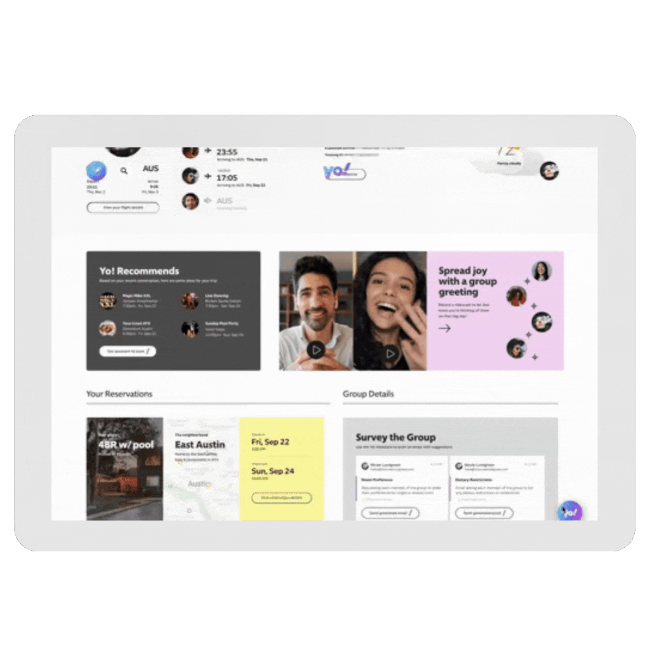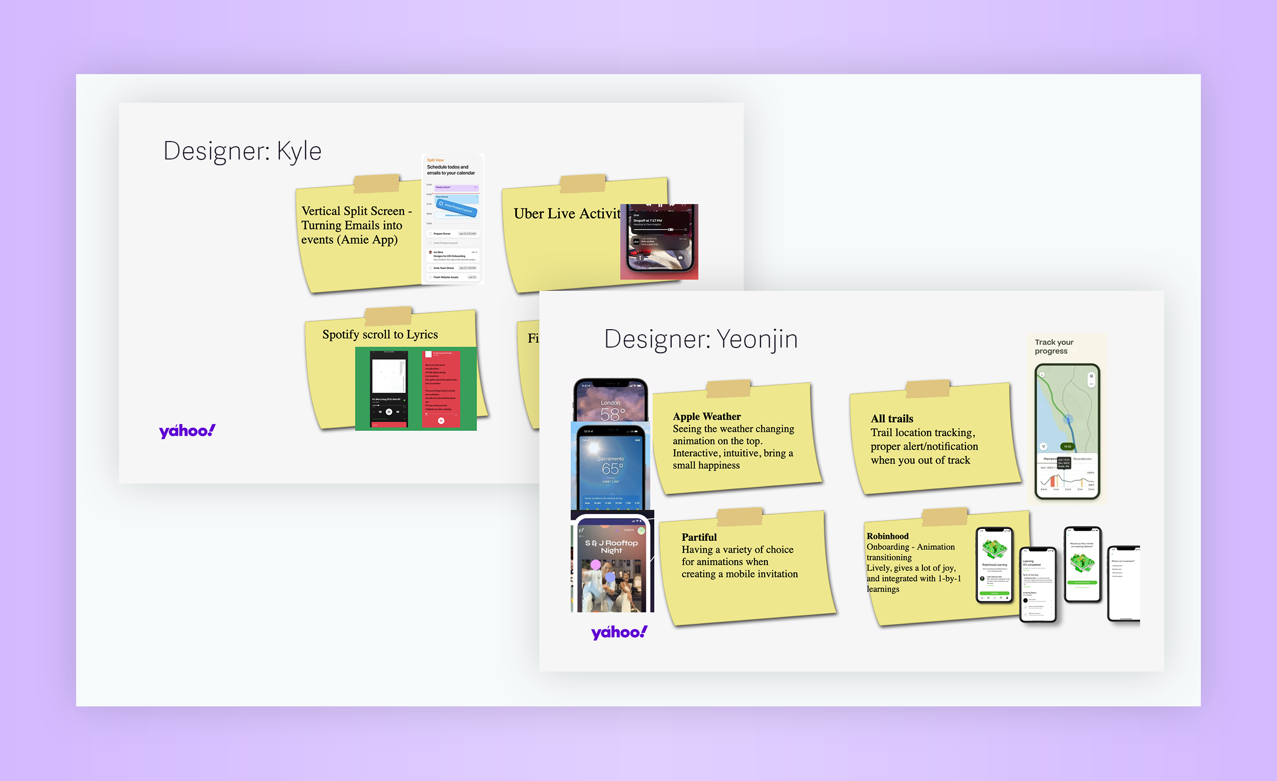 What do Boomers and Gen Z have in common? A longing for connection in an increasingly fast-paced world, we learned. I worked alongside a third-party agency, the incredibly talented Huzzah Studio, to do a deep dive into the world of connection with a broad and mighty lens. None of our users knew that we came from the world of email, and the input we received was vulnerable, raw and as human as it gets. My responsibility as lead designer on the project was to collaborate with Huzzah Studio as they performed user research trials, process their findings and relay it back to each individual squad within the Yahoo! design team and consult with them on how the findings pertained to their projects. In my year at Yahoo!, I juggled being lead Yahoo! designer collaborating with a third party agency, being a stand-in PM on my squad and mentor to junior designers, while also doing squad work.